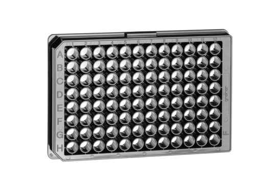 96孔無(wú)結(jié)合微孔板,F(xiàn)型底煙囪形,無(wú)生物分子結(jié)合力,黑色μClear?底,非滅菌,無(wú)蓋,10個(gè)/包
